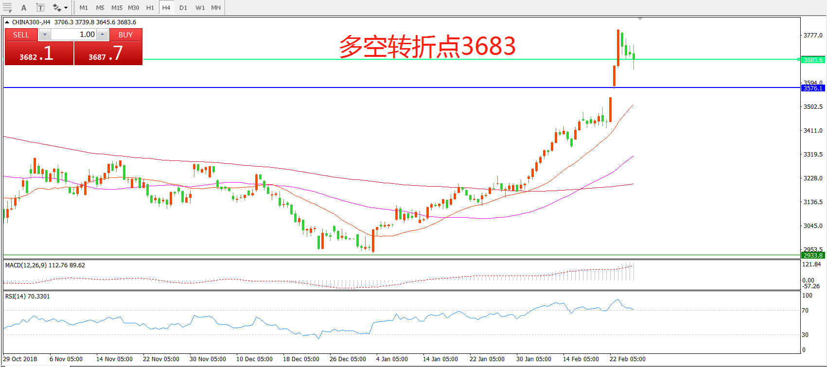 多空转折点:3683.00