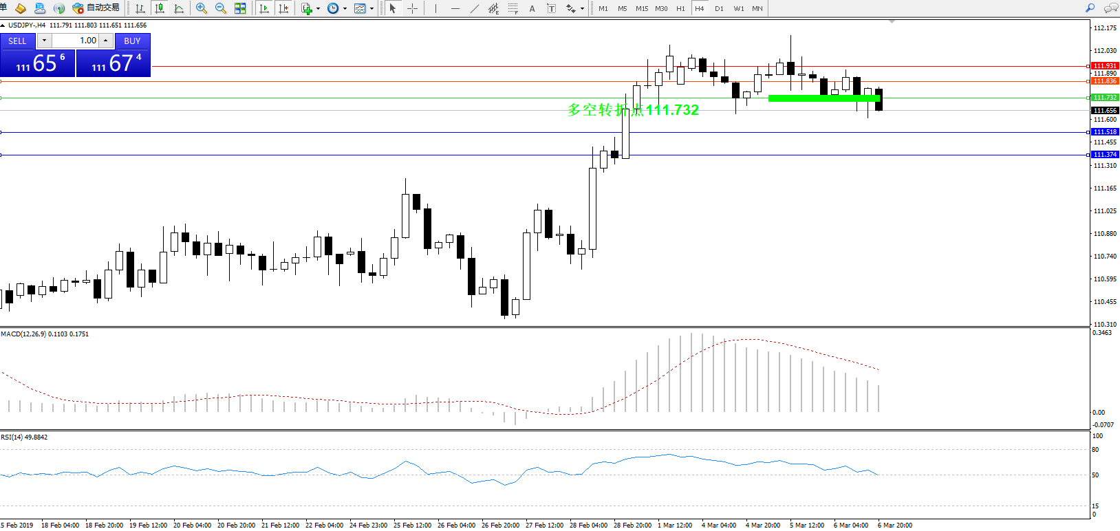 交易策略:111.732下方看跌,目标111.518111.374