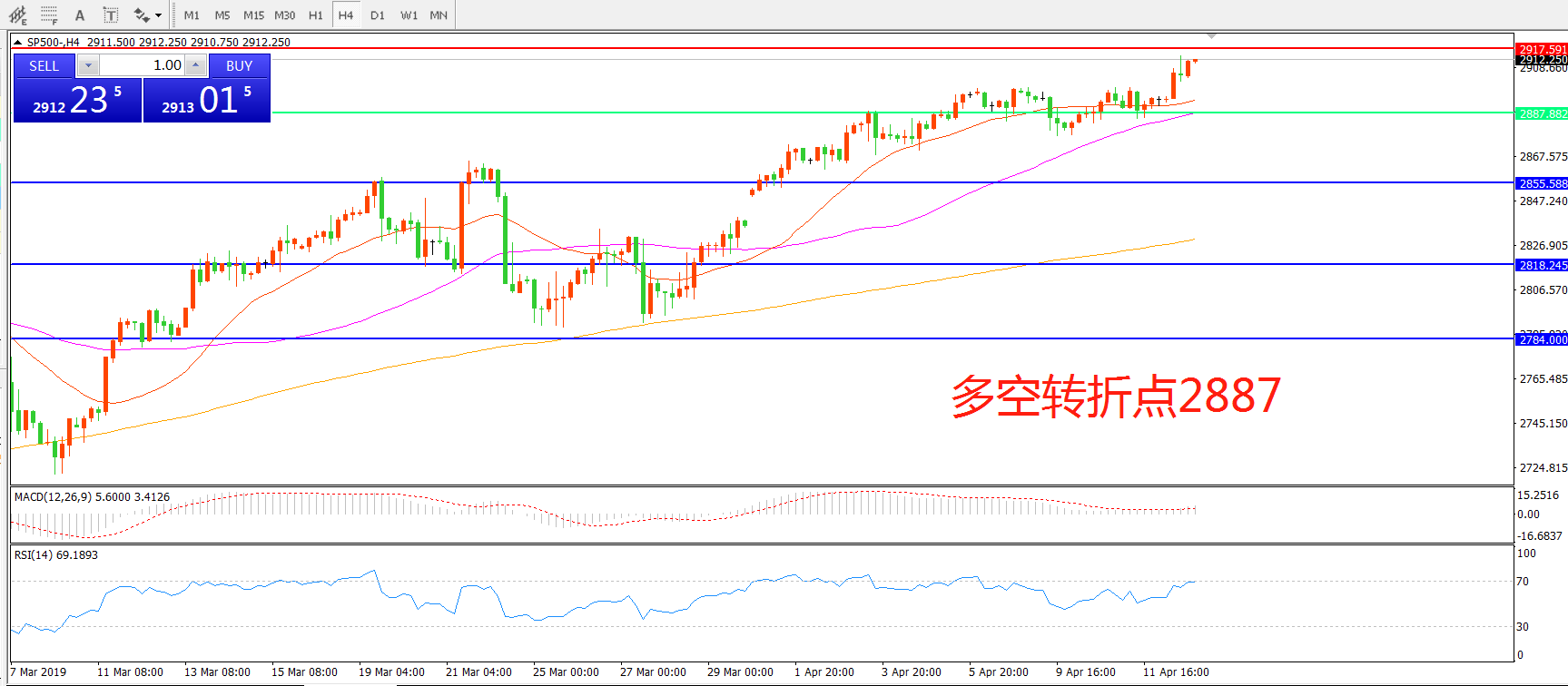 多空转折点:2887.00
