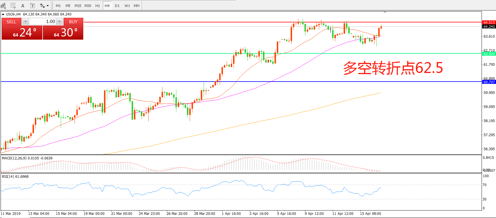 多空转折点:62.50