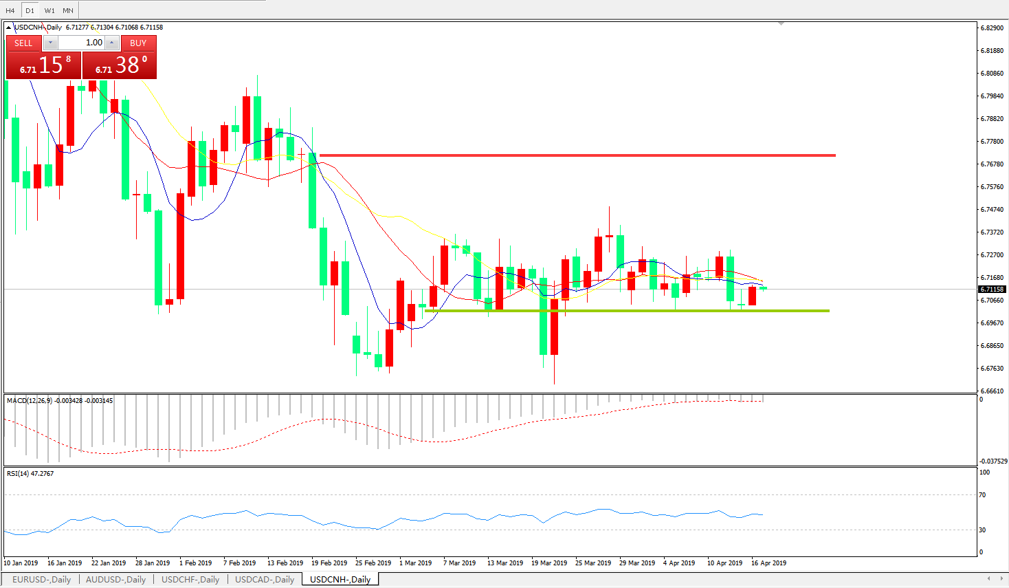 备选策略: 6.6990之下,看跌,目标价位为6.6730,然后为6.6325