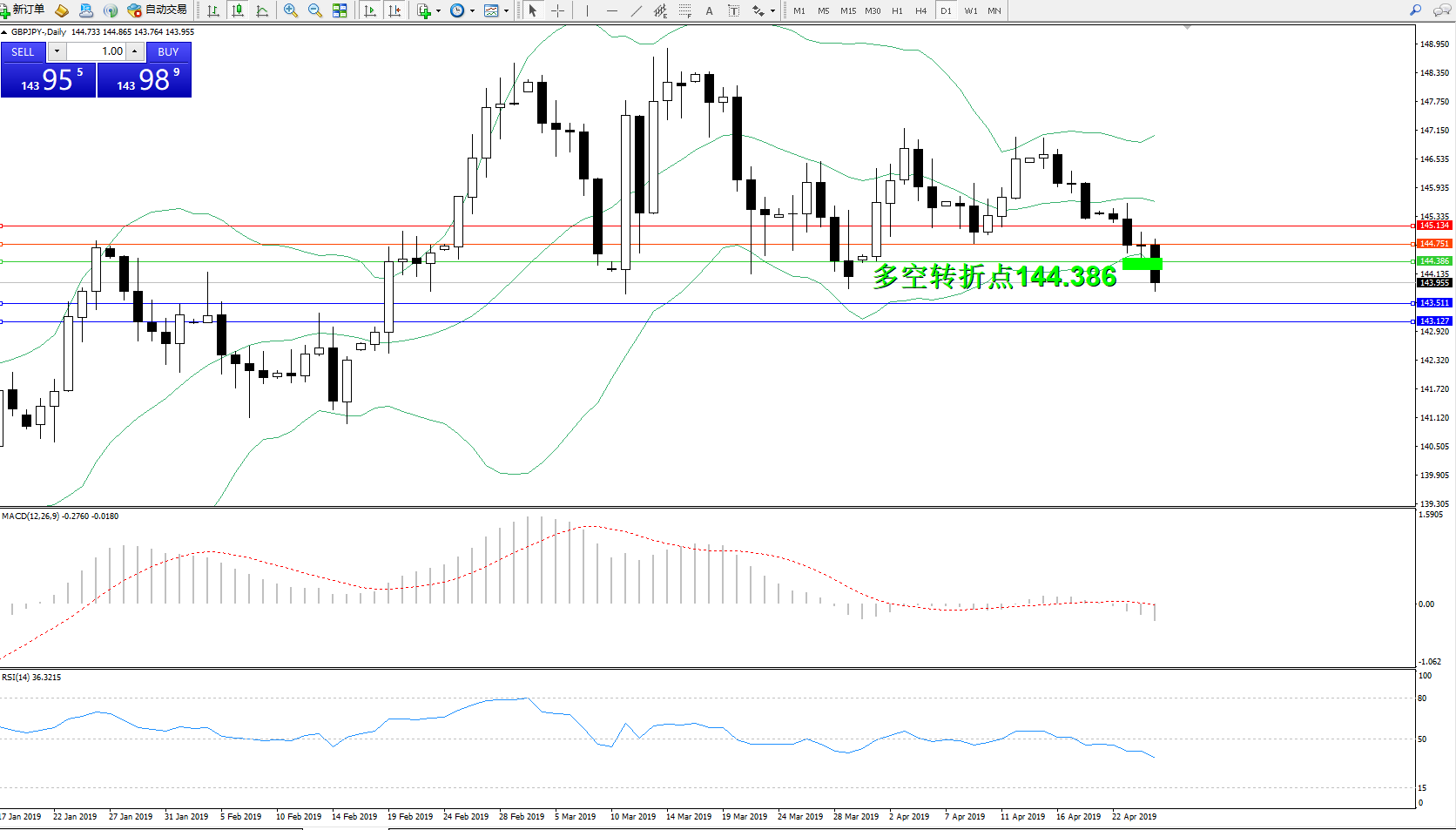 交易策略:144.386下方看跌,目标143.511143.127