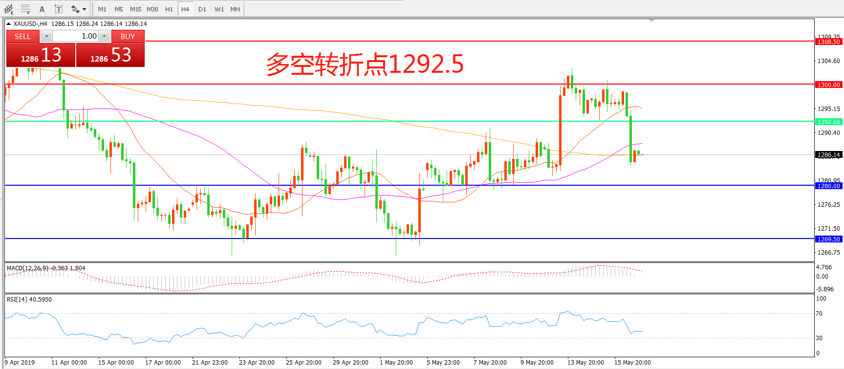 多空转折点:1292.50