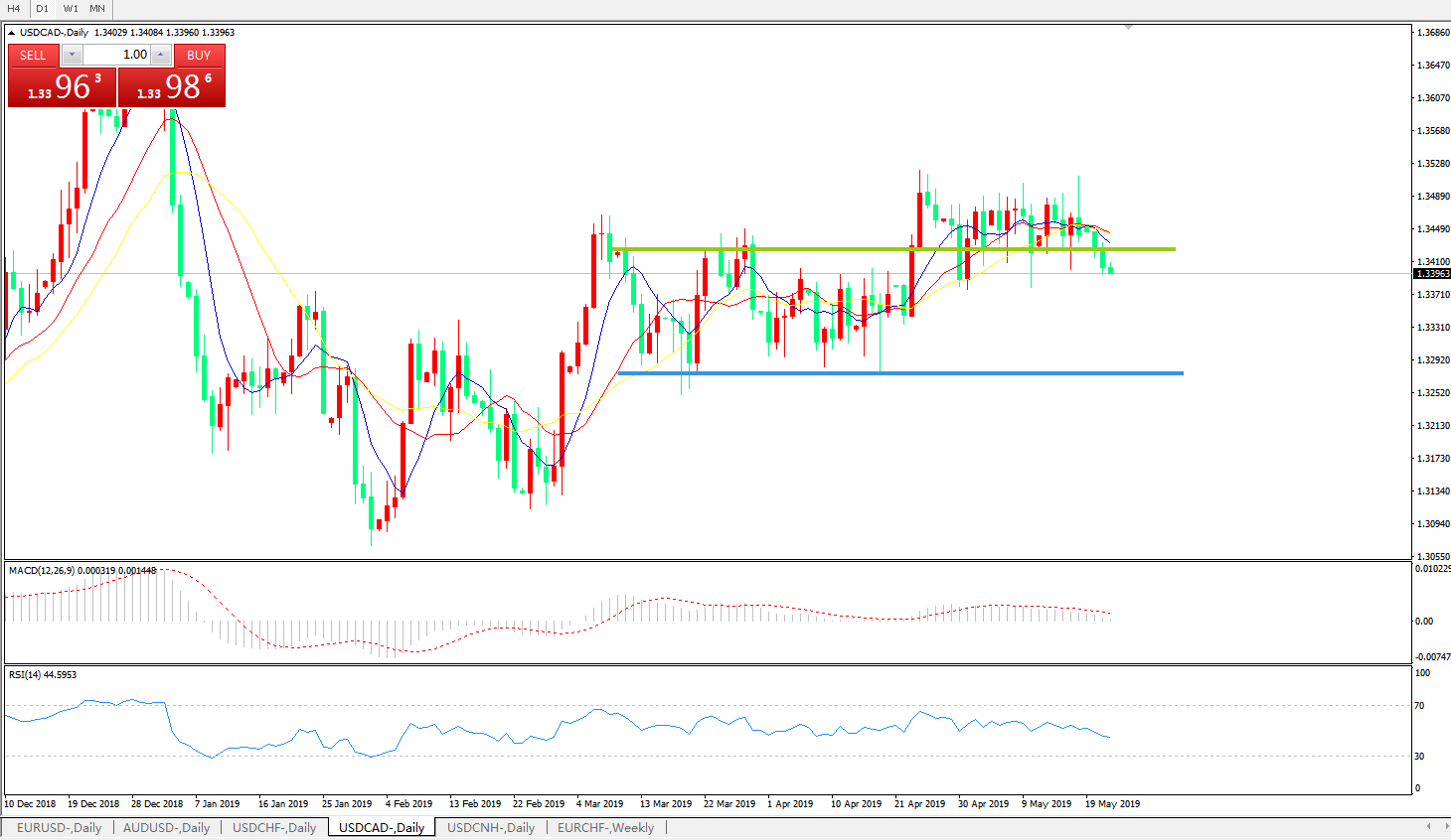 美元兑加元USDCAD 日线图: