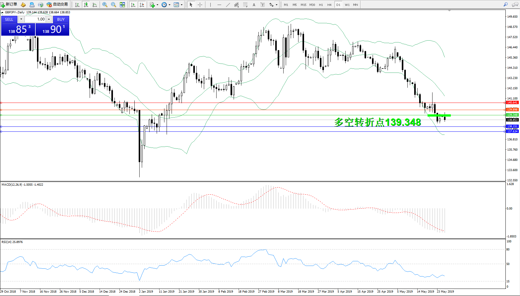 交易策略:139.348下方看跌,目标138.151、137.634