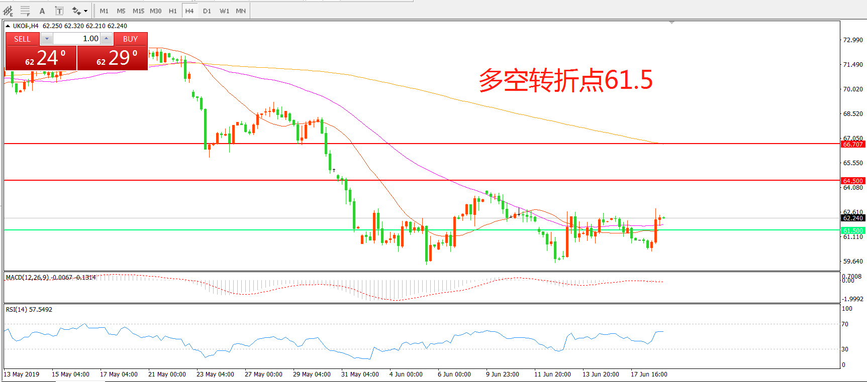 交易策略:在61.50之上看涨,目标64.50    66.70