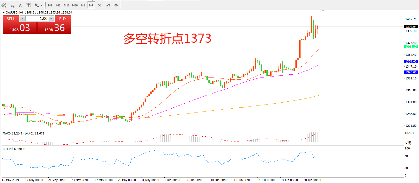 交易策略:在1373.00之上看涨,目标1400.00 1430.00