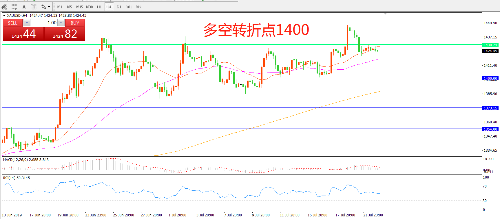 多空转折点:1430.00