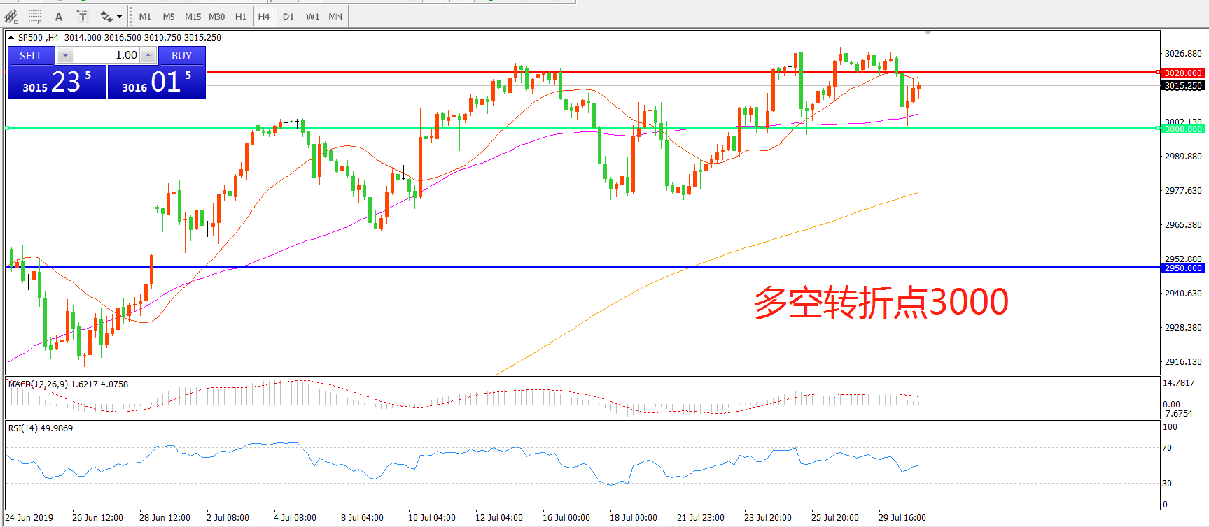 多空转折点:3000.00