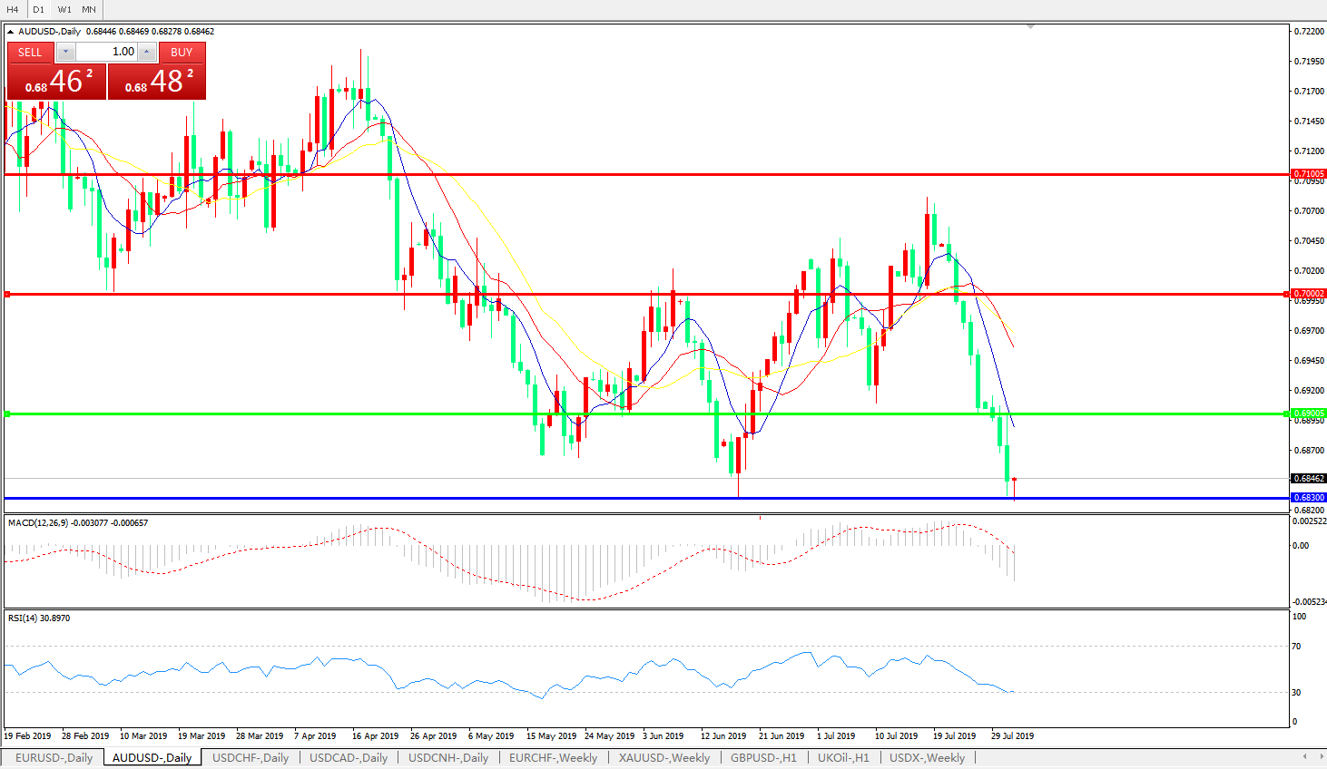 备选策略:0.6900上方看涨,目标0.7000、0.7100