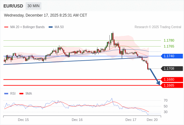 交易策略: 在 1.1740 之下,看跌,目标价位为 1.1680 ,然后为 1.1665 。