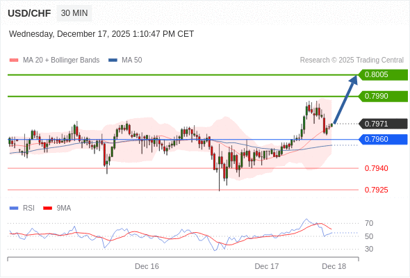 在 0.7960 之上,看涨,目标价位为 0.7990 ,然后为 0.8005 。