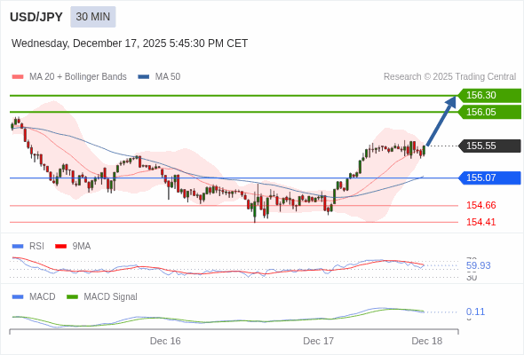 交易策略: 看涨,当 155.07 为支撑位,目标定在156.30。