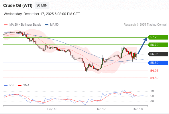 在 55.50 之上,看涨,目标价位为 56.70 ,然后为 57.20 。