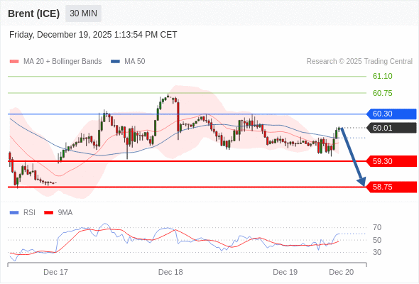 在 60.30 之下,看跌,目标价位为 59.30 ,然后为 58.75 。