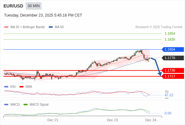 交易策略: 逐渐下跌,当 1.1804 阻碍上行,则 1.1717 为目标位。
