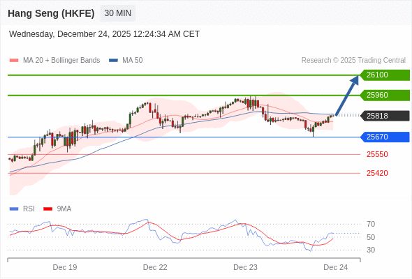 在 25670 之上,看涨,目标价位为 25960 ,然后为 26100 。