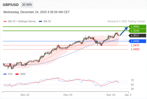 在 1.3490 之上,看涨,目标价位为 1.3540 ,然后为 1.3560 。