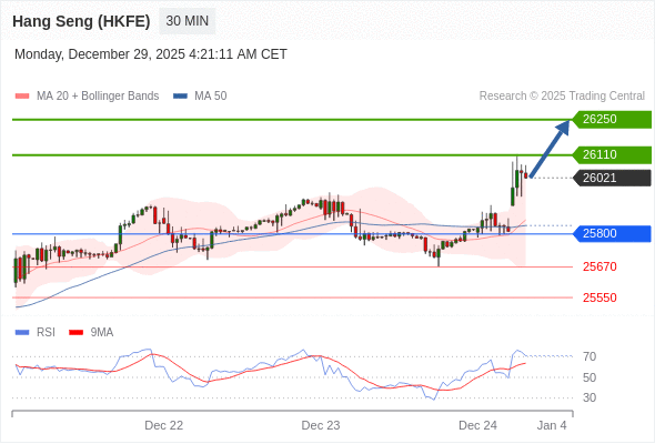 在 25800 之上,看涨,目标价位为 26110 ,然后为 26250 。