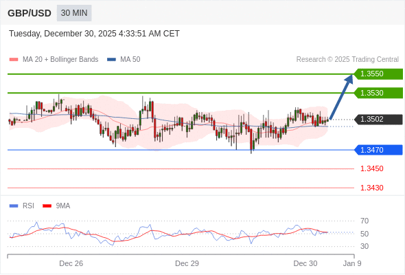 在 1.3470 之上,看涨,目标价位为 1.3530 ,然后为 1.3550 。