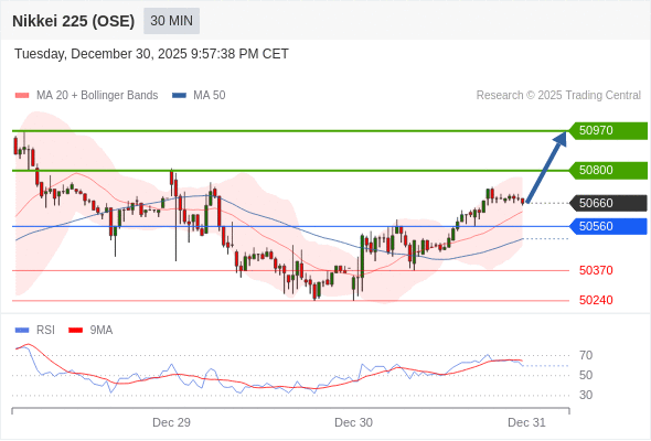 在 50560 之上,看涨,目标价位为 50800 ,然后为 50970 。