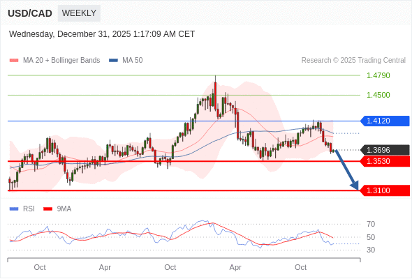 在 1.4120 之下,看跌,目标价位为 1.3530 ,然后为 1.3100 。