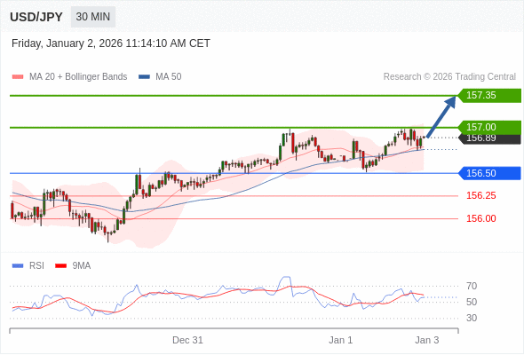 在 156.50 之上,看涨,目标价位为 157.00 ,然后为 157.35 。