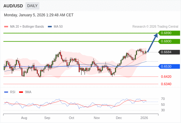 在 0.6530 之上,看涨,目标价位为 0.6800 ,然后为 0.6890 。