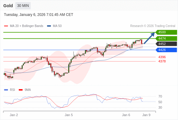 交易策略: 在 4426 之上,看涨,目标价位为 4474 ,然后为 4500 。