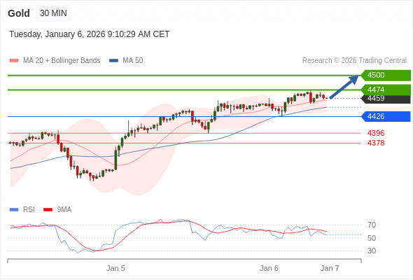 在 4426 之上,看涨,目标价位为 4474 ,然后为 4500 。