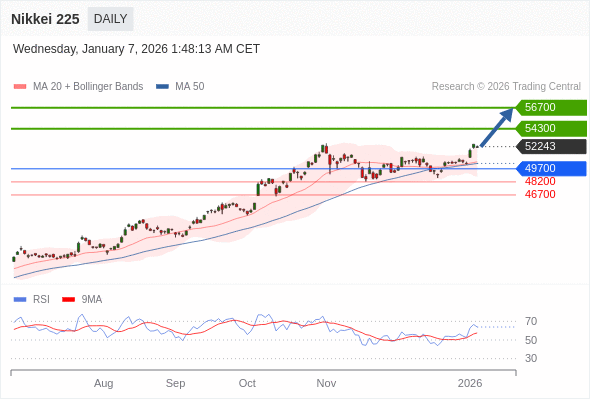 在 49700 之上,看涨,目标价位为 54300 ,然后为 56700 。