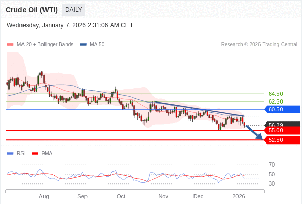 交易策略: 在 60.50 之下,看跌,目标价位为 55.00 ,然后为 52.50 。