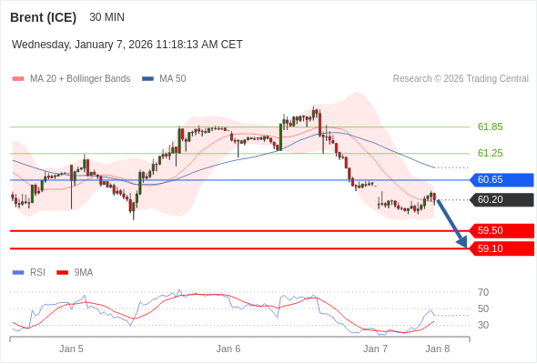 在 60.65 之下,看跌,目标价位为 59.50 ,然后为 59.10 。