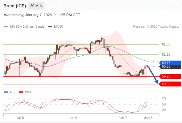 在 60.65 之下,看跌,目标价位为 59.95 ,然后为 59.50 。