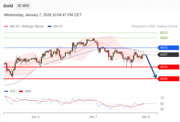 在 4475 之下,看跌,目标价位为 4426 ,然后为 4396 。