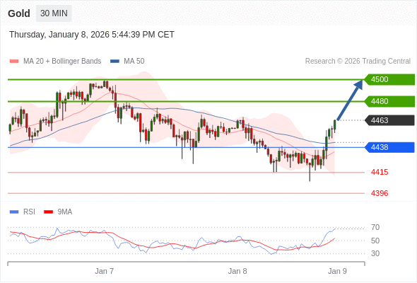 在 4438 之上,看涨,目标价位为 4480 ,然后为 4500 。