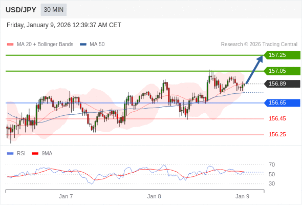 在 156.65 之上,看涨,目标价位为 157.05 ,然后为 157.25 。