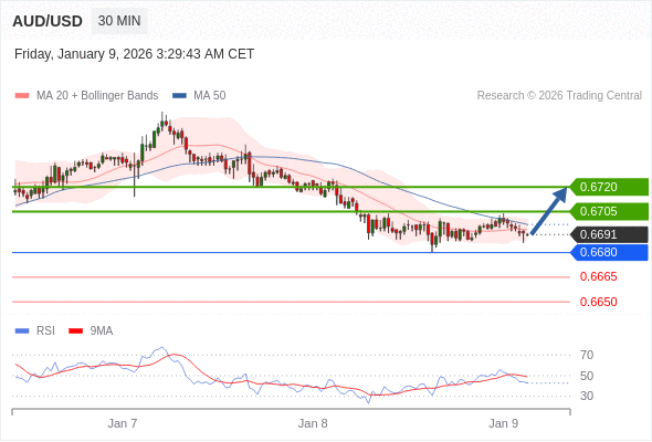在 0.6680 之上,看涨,目标价位为 0.6705 ,然后为 0.6720 。
