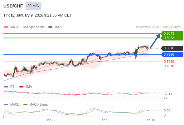 交易策略: 看涨,当 0.7996 为支撑位,目标定在0.8043。