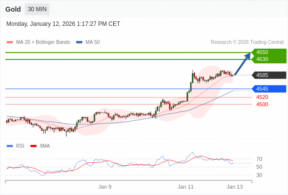 在 4545 之上,看涨,目标价位为 4630 ,然后为 4650 。