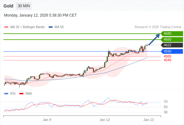 在 4590 之上,看涨,目标价位为 4650 ,然后为 4680 。
