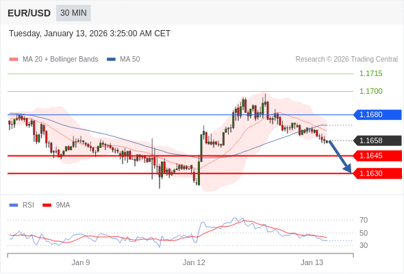 交易策略: 在 1.1680 之下,看跌,目标价位为 1.1645 ,然后为 1.1630 。
