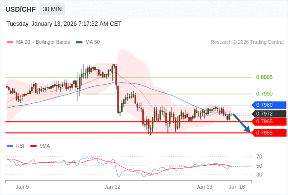 美元/瑞郎 当日内: 目标位为0.7965。