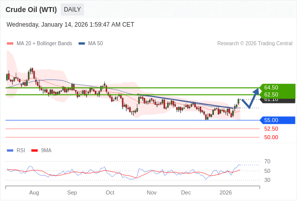 交易策略: 在 55.00 之上,看涨,目标价位为 62.50 ,然后为 64.50 。