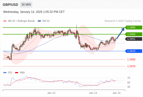 在 1.3410 之上,看涨,目标价位为 1.3465 ,然后为 1.3485 。