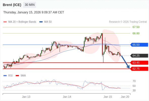 在 65.50 之下,看跌,目标价位为 63.45 ,然后为 62.75 。