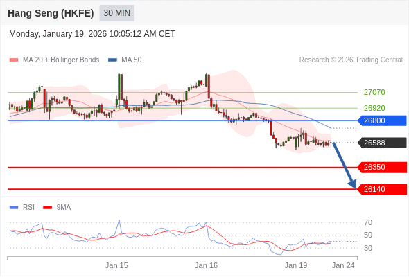 在 26800 之下,看跌,目标价位为 26350 ,然后为 26140 。
