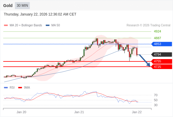 在 4853 之下,看跌,目标价位为 4755 ,然后为 4725 。