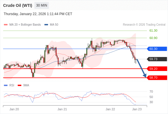 在 60.30 之下,看跌,目标价位为 59.20 ,然后为 58.70 。