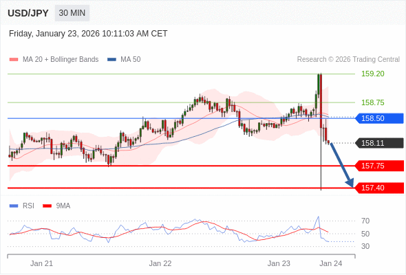 交易策略: 在 158.50 之下,看跌,目标价位为 157.75 ,然后为 157.40 。